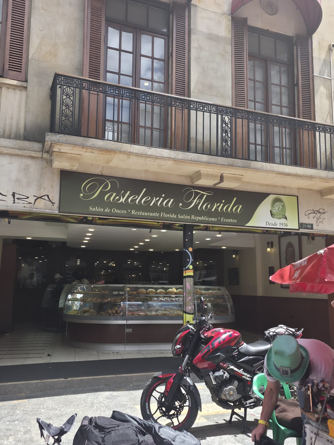 Nuestra mañana comenzó en Pastelería Florida, un clásico bogotano que existe desde 1936 y que conserva ese aire cálido de cafetería tradicional. Desde que entras, te recibe una vitrina llena de postres perfectos, tartaletas brillantes y panes recién hechos que te atrapan de inmediato.