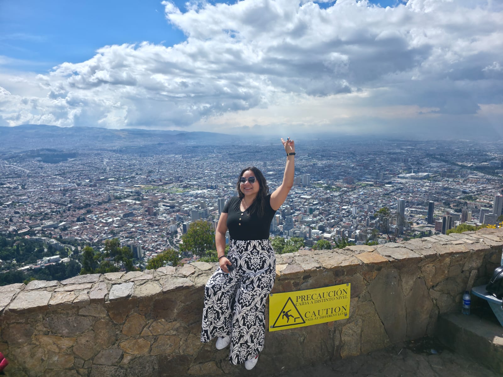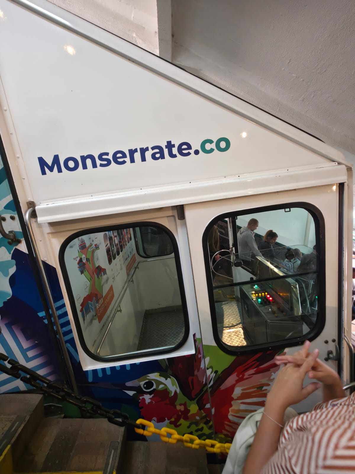 Subimos en teleférico, una cabina colorida que se eleva rápidamente mientras Bogotá se hace cada vez más pequeña. El momento en el que cruza la primera torre y ves aparecer la ciudad completa entre las nubes… simplemente te acelera el corazón.
