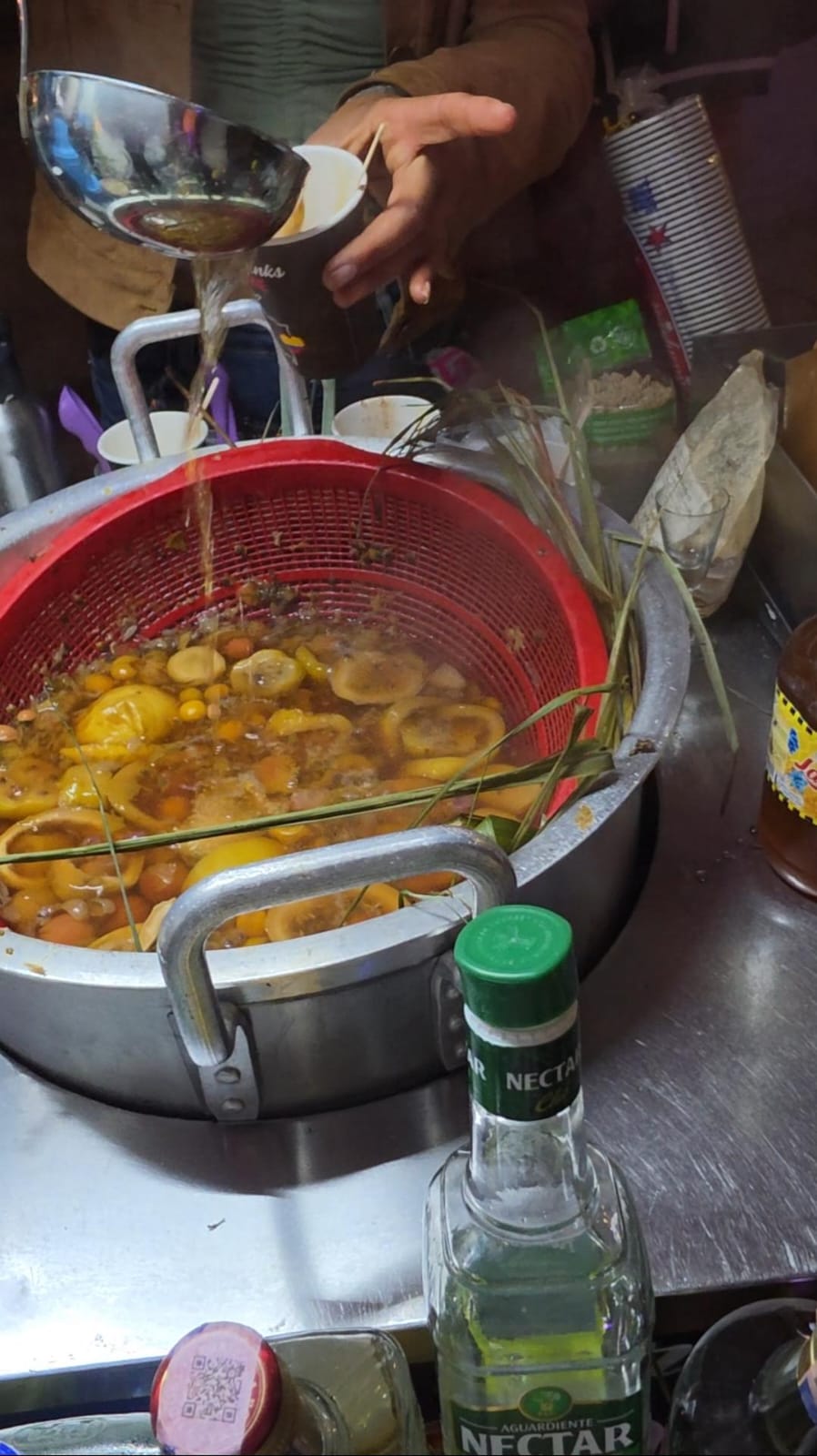 Durante nuestro paseo por La Candelaria además disfrutamos un canelazo, una bebida caliente hecha con aguardiente, canela, panela y limón, perfecta para el clima fresco de la ciudad. Ese toque dulce y picante la convierte en una de las bebidas más ricas del viaje.